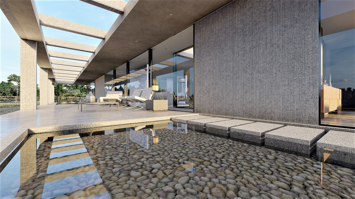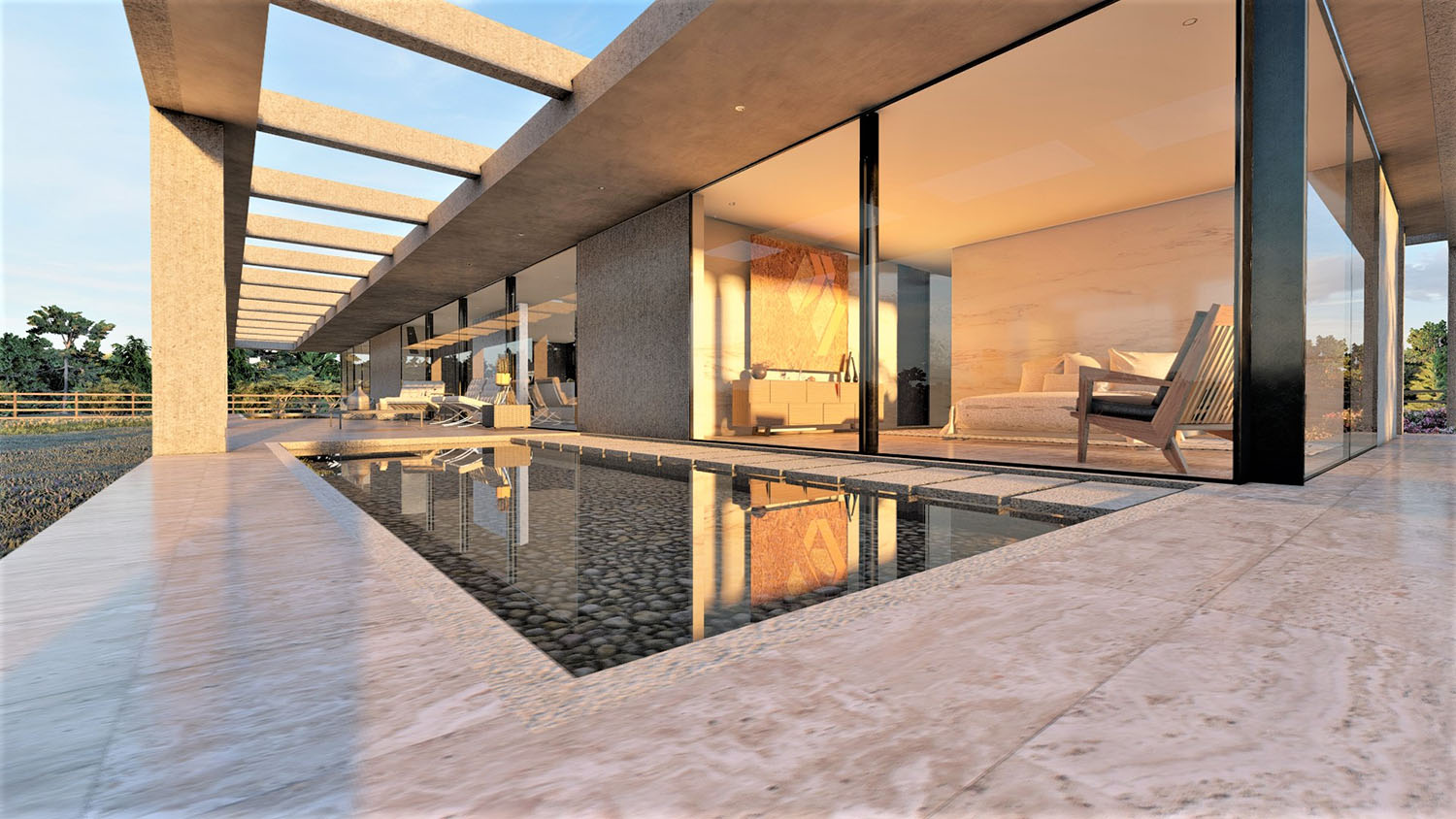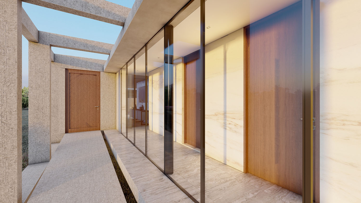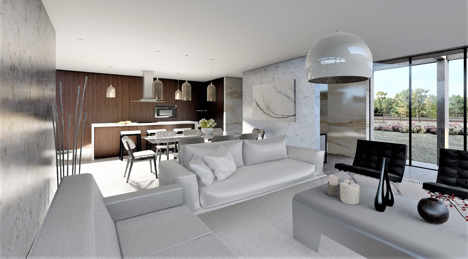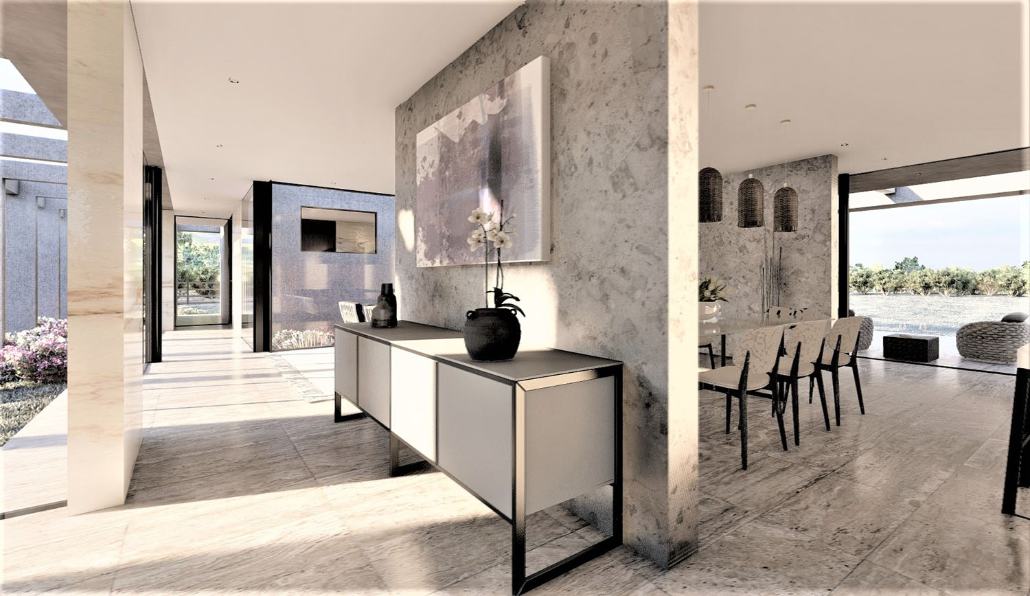 Proyecto diseñado en hormigón armado, Las terminaciones son porcelanato 8mm, micro cemento, & albayalde. Los revestimientos exteriores están resueltos en madera, piedra y hormigón a la vista. Las ventanas son termopanel 5-10-5. Los pisos son de porcelanato, cemento micro vibrado y baldosas córdova.